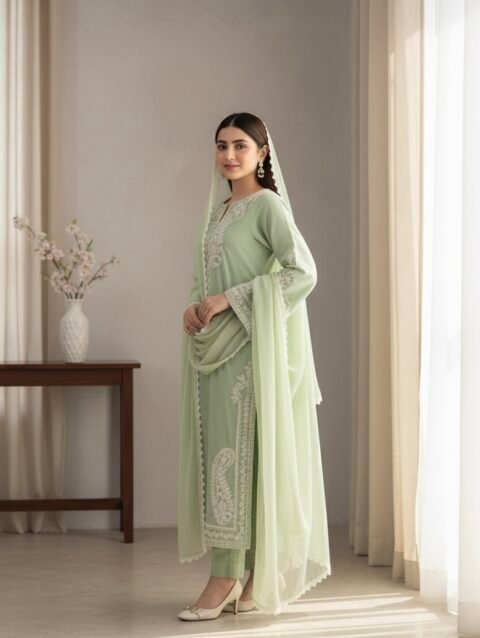 This beautifully crafted stitched 3-piece suit combines comfort, style, and elegance. The embroidered lawn shirt features intricate patterns that add a touch of sophistication, while the matching embroidered lawn dupatta complements the overall look perfectly. The dyed cotton trousers ensure comfort and a flawless fit, making this outfit ideal for casual gatherings, semi-formal events, or festive occasions. Lightweight and breathable, this suit keeps you stylish and comfortable all day long.