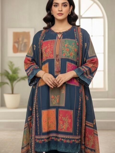 This beautifully crafted stitched 3-piece suit combines comfort, style, and elegance. The embroidered lawn shirt features intricate patterns that add a touch of sophistication, while the matching embroidered lawn dupatta complements the overall look perfectly. The dyed cotton trousers ensure comfort and a flawless fit, making this outfit ideal for casual gatherings, semi-formal events, or festive occasions. Lightweight and breathable, this suit keeps you stylish and comfortable all day long.