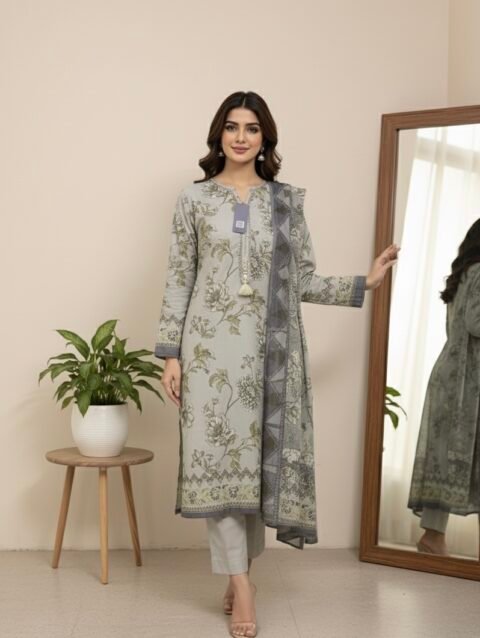 This beautifully crafted stitched 3-piece suit combines comfort, style, and elegance. The embroidered lawn shirt features intricate patterns that add a touch of sophistication, while the matching embroidered lawn dupatta complements the overall look perfectly. The dyed cotton trousers ensure comfort and a flawless fit, making this outfit ideal for casual gatherings, semi-formal events, or festive occasions. Lightweight and breathable, this suit keeps you stylish and comfortable all day long.