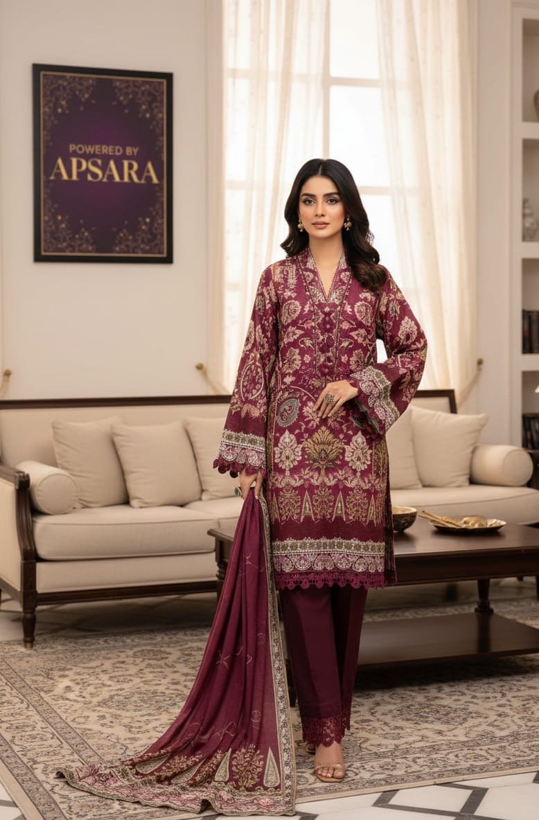 This stylish Unstitched 3-Piece Digital Printed Lawn Suit is designed for effortless elegance and everyday comfort. The lawn shirt features vibrant digital prints that bring a fresh and modern look, while the digitally printed voile dupatta adds a light, airy feel with graceful flow.