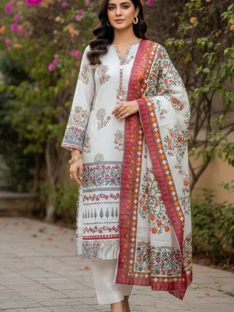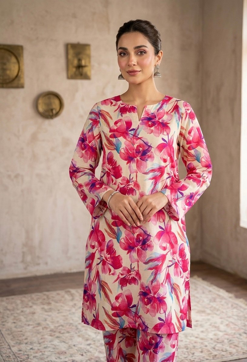 Elegant 2-piece bana dora allover printed lawn dress featuring a beautifully designed shirt with vibrant, eye-catching patterns. Paired with a matching printed trouser to create a balanced and stylish look. Made from soft, lightweight lawn fabric that feels comfortable on the skin and keeps you cool in warm weather. Perfect for everyday wear, casual outings, and summer styling.