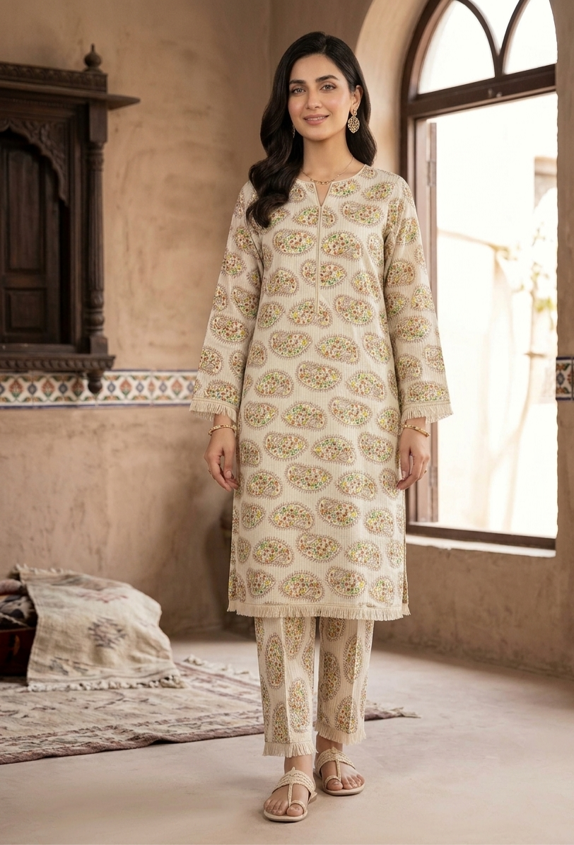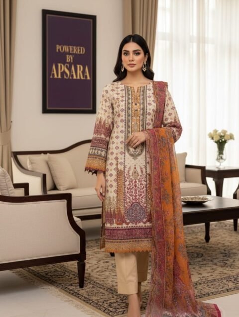 Elegant 2-piece bana dora allover printed lawn dress featuring a beautifully designed shirt with vibrant, eye-catching patterns. Paired with a matching printed trouser to create a balanced and stylish look. Made from soft, lightweight lawn fabric that feels comfortable on the skin and keeps you cool in warm weather. Perfect for everyday wear, casual outings, and summer styling.