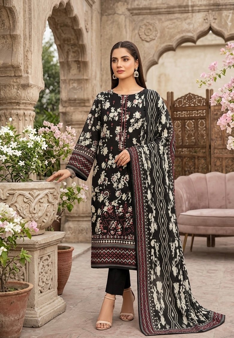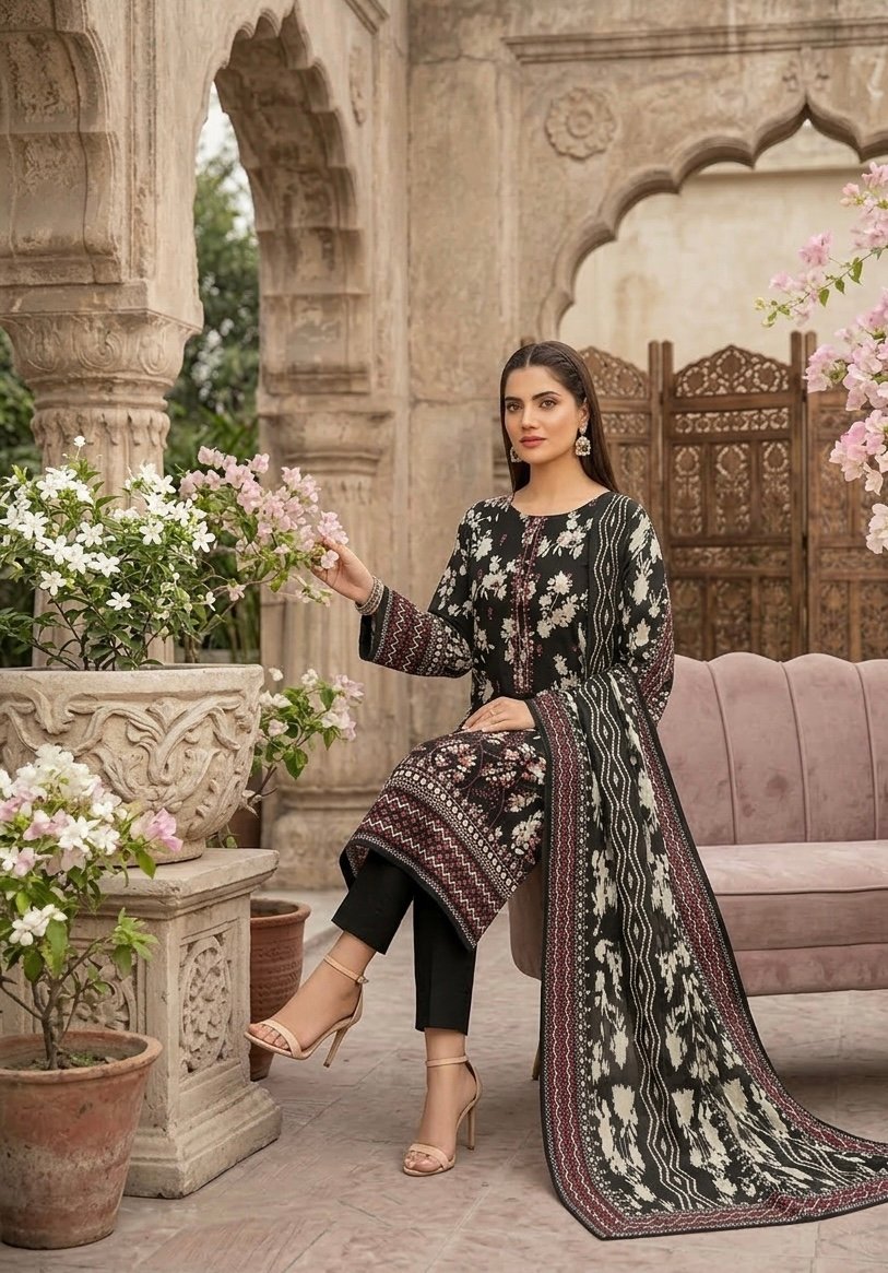Elevate your summer wardrobe with this sophisticated three-piece ensemble, designed for those who value timeless elegance and superior comfort.Featuring intricate, delicate embroidery that adds a touch of refined detail to the breathable, high-quality lawn fabric. Crafted with a soft, lightweight drape, this printed dupatta brings a vibrant pop of artistry to your look.A sleek, perfectly tailored dyed trouser that provides a polished finish to your overall silhouette.