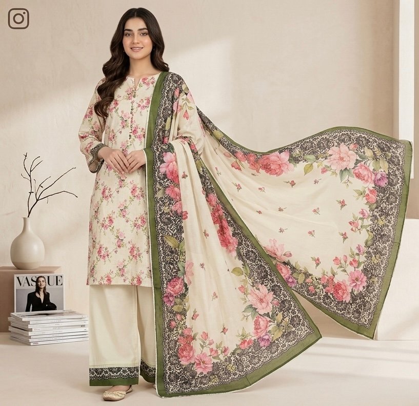 Elegant regalia printed shirt paired with a simple plain trouser for a balanced, stylish look.Lightweight voil lawn dupatta adds a soft, breathable touch perfect for summer wear.A comfortable and trendy outfit, ideal for everyday use and casual occasions.