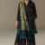 A black shirt inspired by modern chintz patterns, paired with black trousers featuring subtle block print detailing. The look is completed with an olive green and black shawl, adding contrast and depth to this contemporary and elegant ensemble.